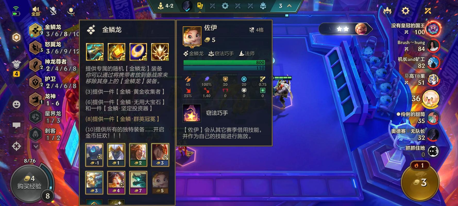 〖Four〗、核心阵容搭配 基础阵容:四名宇航员(如提莫、艾希、俄洛伊等)、一名大眼睛作为副C,以及伊泽瑞尔作为物理输出点。可选棋子:根据对手阵容灵活选取,如诺手增加控制,宝石提升阵容坦度。
