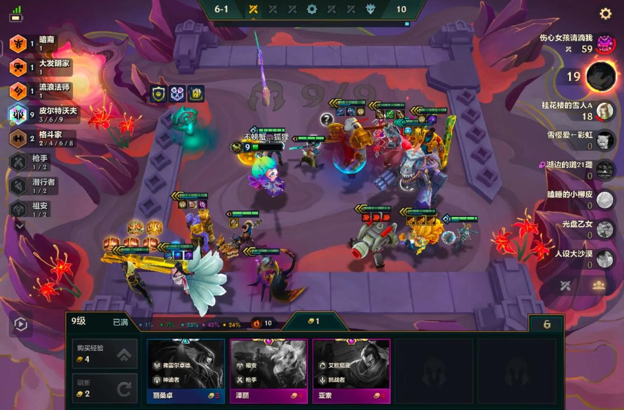 金铲铲之战追三星六费的技巧主要包括前期运营、中期过渡和后期策略三个方面:前期运营:打连胜攒经济:选取强势的棋子和阵容组合,争取多打连胜,以稳住血量和获得额外的经济奖励。经济类海克斯选取:优先选取与经济相关的海克斯强化,如“利滚利”“黄金门票”等,以加快金币积累速度。
