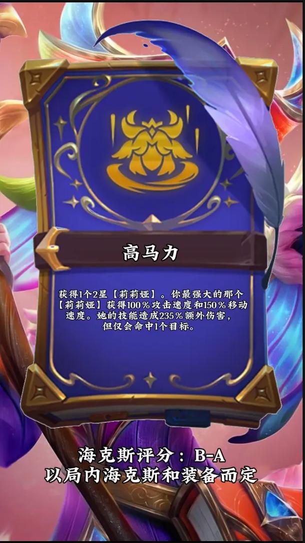 〖Four〗、金铲铲之战强力海克斯选取推荐首先是职业类的海克斯,职业类海克斯是否是天胡,主要取决于这个阵容版本是否强势。黑白魔,乌鸦时期黑白魔是天胡转职,但是12就不是了,黑白魔的天胡主要是蚂蚱和3约,和转职无关,加上黑白魔的职业加强并不关键,所以这些我们开局统统不会选,2和3的时候如果已经黑白魔了会选取这个。