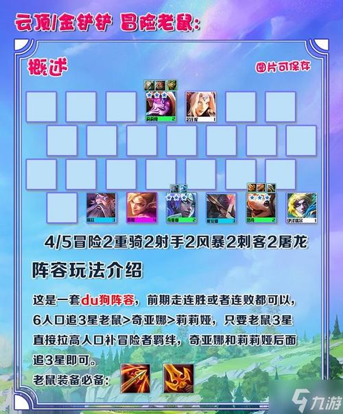 运营思路:开局应抢无用大棒或女神之泪。确认是否玩这个阵容前,检查龙之天才是否法师。若不是,可考虑更换策略。通常从4-1或7开始构建,若非,则从3-2或6开始,寻找5和3星界。找到蛙妃后,维持连胜或连败,通常以青蛙妃子的装备开始。5人组合3条星龙、3个法师、2个战士。