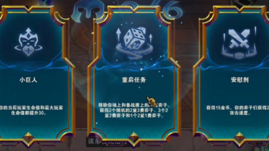 看到必选(T1)窃贼帮派:能够提供额外的装备和金币,极大增强前期战斗力。新人入队:为队伍提供额外的英雄,增加阵容灵活性和战斗力。升级咯:快速升级人口,提高阵容上限。前进之路:提供额外的经验值,加速升级过程。羽量级III:为低费卡提供额外攻速,适合赌狗阵容。