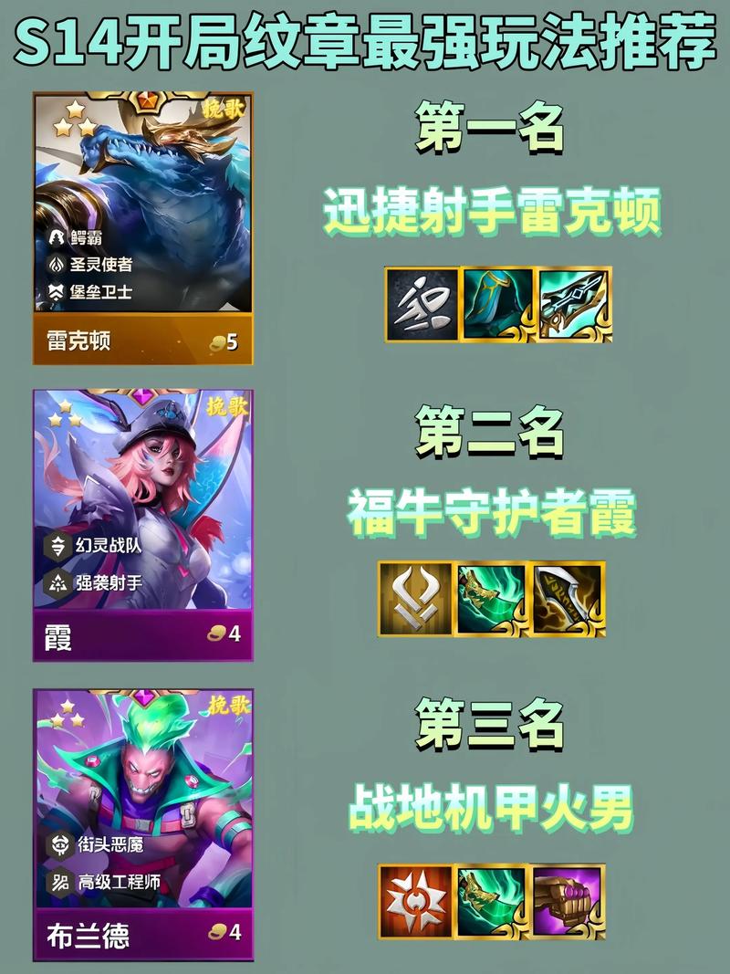 〖Four〗、核心英雄:图奇(老鼠)、潘森、蔚、安妮、阿木木、薇古丝、波比。阵容羁绊:4朋克、4EMO、2舞者、2护卫、2裁决。天选选取:优先选取朋克的天选,无论是潘森还是老鼠都可以。朋克天选能够提升阵容的上限,特别是在有转职或铲子时,可以更容易地达到6朋克羁绊。