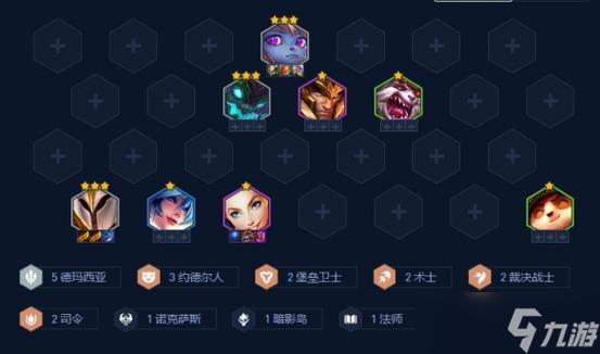 这个8级的标准阵容中,上9级后,提莫可以替换为大头,接着补充阿狸以开启2法师羁绊。如果有德玛转职,那么在9级时可以优先开启7德玛羁绊,并将转职给其他3星棋子。同样,如果有裁决转职,那么9级时可以优先开启4裁决羁绊,并将转职给拉克丝。下面我们谈谈装备搭配。