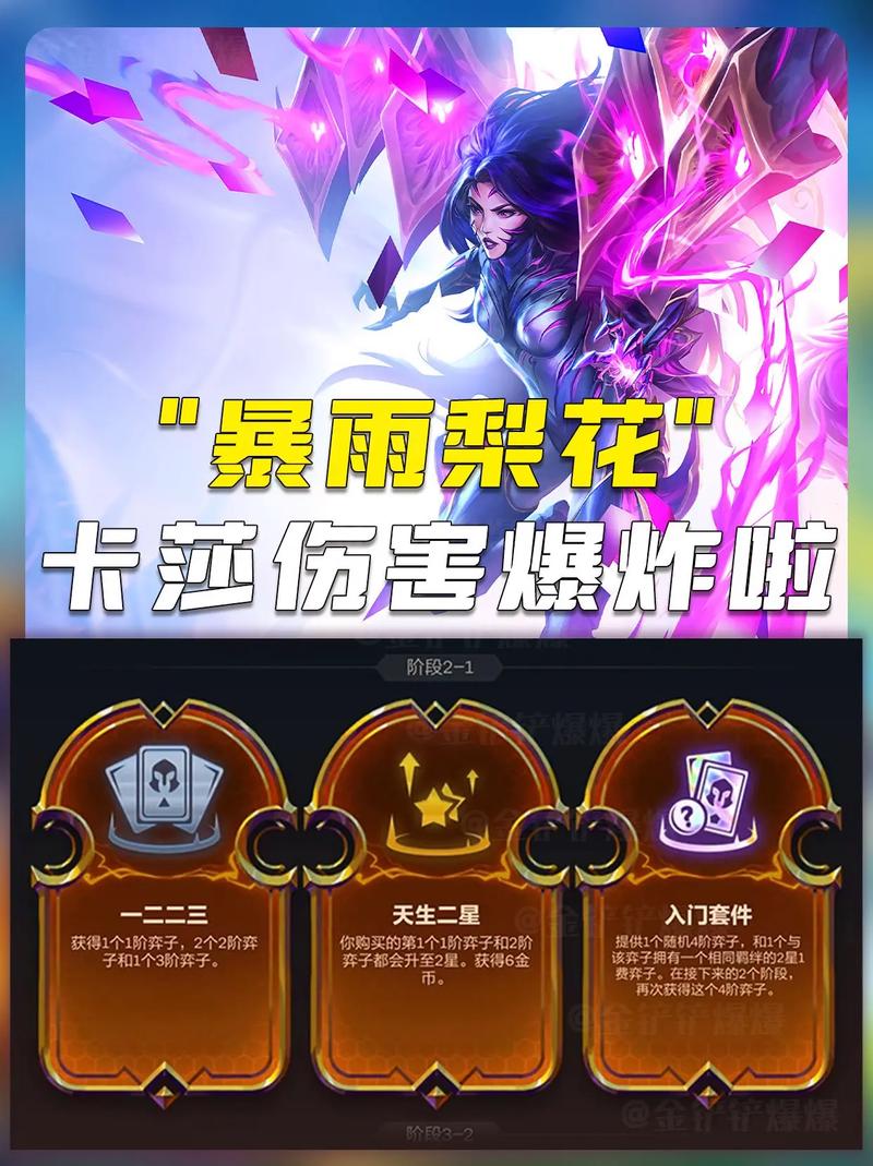 卡莎在金铲铲之战S9赛季是一张4费卡,不仅适用于虚空阵容,还可以融入多种组合。 在游戏早期,即2-1阶段升至4级,2-5阶段升至5级,3-2阶段升至6级,4-1或4-2阶段升至7级,确保阵容中有强大的棋子和羁绊支持。