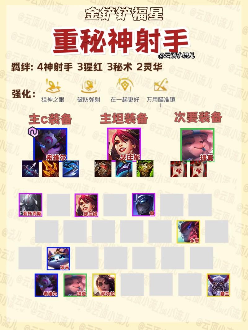 〖Two〗、核心玩法在于保证经济与血量健康,使用利息升级或搜寻关键棋子。通常在3-2时升6级,4-1时升7级,4-5时升8级。前中期追求连胜,考验游戏理解与过渡能力。前期使用4海克斯2强袭2格斗过度,寻找希维尔装备强力的打工旗子,如飞机、卢锡安等。优先升人口,力争连胜。