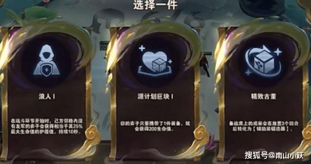 当没有更好的选取,或是需要有吸血时,也可以选取。适合阵容:大嘴、发条、没带吸血装的萨米拉(因为萨米拉技能伤害高,所以吸血也很快)原计划植入(__)比较辣鸡的海客斯,加的血量攻击力聊胜于无。但有一个例外,如果你想前期打连胜可以选,选了后给每个棋子上一个散件,前面加的血量和攻击相对来说还是比较可观的。