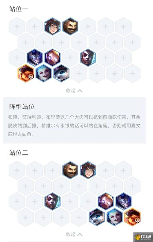 - 优先选取粉碎器,增加额外魔法伤害。- 其他转职如强袭战士之魂、海克斯科技纹章等也可以优先选取。 站位安排:- 希维尔比较好放在角落输出,确保安全。- 猪妹和蔚放在左上角和右上角,作为前排坦克。- 塔姆放在第一排对位对方坦克,其他人围绕希维尔站位,防止刺客突入。