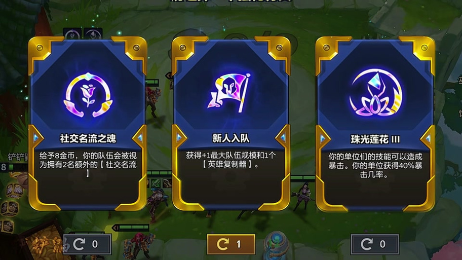 〖Three〗、金铲铲海克斯强化在第四回合。每局对弈中,玩家可以选取三次海克斯强化,辅助策略执行,引领走向胜利。游戏早期(阶段1-4)会发给你一个海克斯强化,中期(阶段3-3)再发一个,后期(阶段4-6)发放最后一个。每次都有三个海克斯强化供你选取。