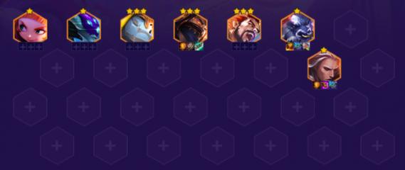 〖Four〗、阵容分析阵容组成:艾希、普朗克、雷克顿、悠米、李青、墨菲特、亚索、伊泽瑞尔羁绊组成:3源计划、3超级英雄、2决斗大师、2吉祥物、2情报特工、2斗士、2爱心使者现在测试服玩泰隆主要是两套阵容,一套是挂3超级英雄的超级泰隆,一套是6混沌+4福牛的混沌福牛泰隆。