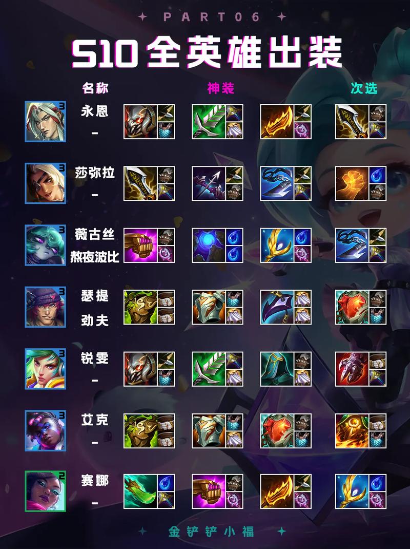 〖Two〗、建议初期选取魔法靴和超光速拳套作为辅助装备,后续装备推荐依次为魔切、无尽、负极斗篷、红BUFF、女神之泪和末世。游戏中,金铲铲男刀应利用其位移和闪避能力对敌人造成伤害,并通过技能控制对方,降低对方的输出。同时,玩家需要注意收集小兵和野怪的经验和金币,以保持等级和装备的优势。