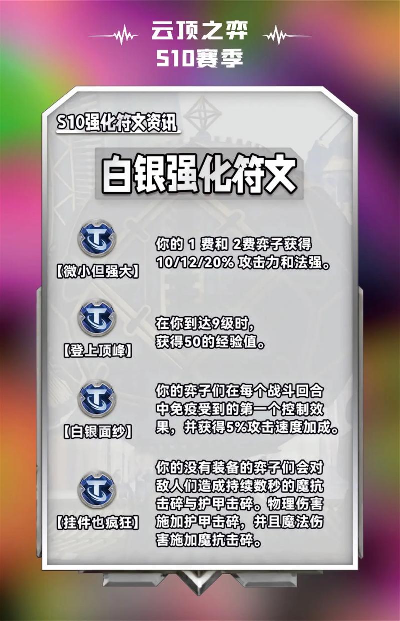 拳套+锁子甲:现在合成缄默斗篷,效果是战斗开始时,向前发射一道光束,延迟命中敌人的首次施法,增加他们的最大法力值40%,直到目标成功施法。负极斗篷+女神之泪:现在合成圣杯,效果是当携带者施放技能时,附近所有友军获得10点法力值。
