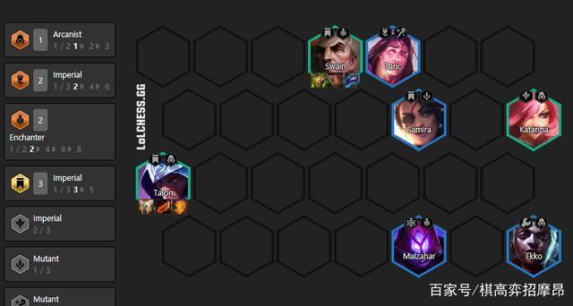 阵容搭配方面,建议阵容包含斯维因、塔里克、薇古丝、莎弥拉、吉格斯、玛尔扎哈、露娜、泰隆,形成3帝国、4黑法、2白魔、1名流的组合。在选取海克斯强化时,应避免选取浪人、符能护盾等。乌鸦依赖于通过承受伤害来回蓝释放技能,因此这套阵容力求快速清除敌人,尽量在较短的时间内完成几个大范围的清场操作。
