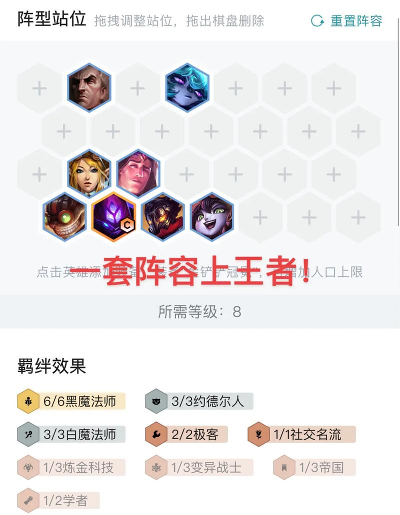 后期:决定胜负的关键阶段,要根据敌方的阵容进行最后的站位调整。如敌方有高生命值坦克,可以放置具有穿透伤害的英雄进行针对。总的来说,金铲铲之战的海克斯科技阵容搭配充满策略性和变化性。玩家需要根据实际情况选取合适的海克斯科技和阵容搭配,并灵活调整站位和运营策略才能取得更多胜利。