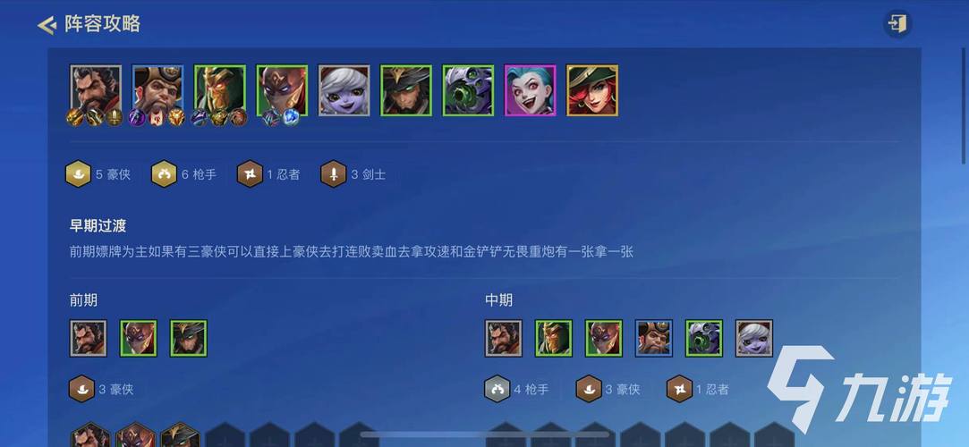 〖One〗、还是正常开局选取强势装备,如版本热门宝剑与反曲,次之防装开局,可摇摆这套阵容。具体阶段 ①、2阶段:主要以稳定血量为主,并非一定要3换形,前期更建议啥打工强用啥,如骑士枪,骑士仙灵等均可,摩昂这局就是骑士枪手过度,备选席留换形棋子。