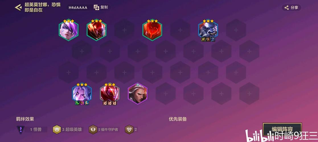 〖Three〗、该阵容由4吉祥物、3至高天、2怪兽、2秘术卫士组成。至高天羁绊拥有独特效果,如薇古丝的技能“暮气震波”,造成魔法伤害并具有不可阻挡状态。莫甘娜则提供控制和魔抗击碎效果,帮助薇古丝和其他棋子输出更高。派克的技能提供团控,尽管定位为挂件,但在团队中仍具有价值。