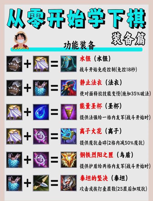 〖Four〗、只能持有一件)持有者现在也属于魔法师。号令之旗合成公式:金铲铲+巨人腰带效果:(只能持有一件)持有者现在也属于三国猛将。自然之力合成公式:金铲铲+金铲铲属性:+1人口效果:多一个上场棋子幽梦之灵合成公式:金铲铲+格斗拳套属性:+20%法术强度效果:(只能持有一件)持有者现在也属于刺客。