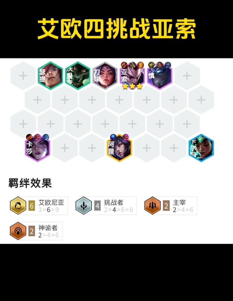 〖Four〗、首先,阵容构建如下:阵容包括瑟庄妮、赛娜、蔚、牛头、萨勒芬妮、加里奥和发条/希尔科(9人口),形成3名流2格斗2执法2海克斯1宿敌的羁绊。海克斯强化方面,优先选取分享聚光灯、名流转职、+1/2名流、复苏之风、护甲镀层和珠光莲花,狩猎律动、星界赐福、战斗法师、电火花则作为次选。
