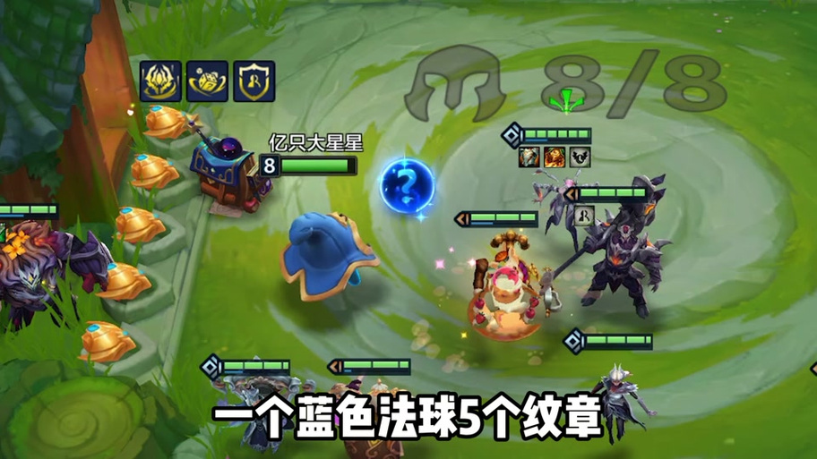 〖Three〗、装备上面除了提莫的蓝uff、法爆和科技枪以外可以给琴女电刀和圣杯,前排加里奥吃离子火花和板甲,最后一个装备靠三德玛西亚来变,因为我们有卡牌的英雄之力带来的潘多拉魔盒所以我们是很容易神装的,所以我们在海选的时候拿高费卡或者羁绊内的卡就可以了。
