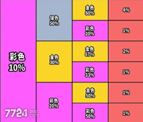 在金铲铲之战游戏中,银银金的海克斯等级组合出现概率比较高,达到百分之三十。相比之下,彩彩彩的组合出现概率最低,仅有百分之一的机会。游戏中各种海克斯颜色的组合出现概率分布情况如下图所示。图中清晰地展示了不同海克斯颜色组合出现的概率。其中,银色和金色的组合最为常见,而多彩组合则较为稀有。