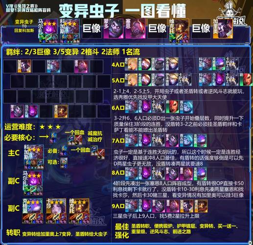 〖Four〗、双城之战养大虫子金铲铲需要正确的阵容站位,具体方法如下:前期布局:开局拿腰带,或者板甲,优先做大虫子装备,大虫子的神装转圣盾使。如果拿不到圣盾使可以装上狂徒,装备推荐前期拿一把羊刀给大嘴打工,后期换卡莎。