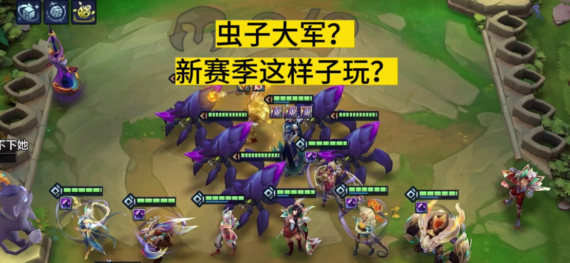 《金铲铲之战》S5霓虹之夜上分阵容推荐变异巨像这套阵容与双城版本变化不大,依然是以玛尔扎哈(蚂蚱)与科加斯(大虫子)为核心,如果螳螂来的早或又刺转也可考虑螳螂主C。测试服最近更新现阿利斯塔(牛头)双抗大增强,哪怕无装备都可稳定释放技能,坦度极其优质。