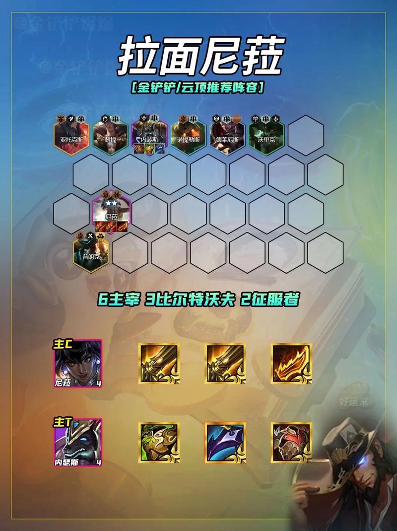 金铲铲之战S5版本策略是眼泪开,掌握关键阵容和海克斯是上分的关键。白魔塞纳阵容:这是一个以塞纳为核心的阵容,推荐连胜开局,装备上羊刀、无尽和巨杀/轻语是最佳选取。阵容组成为4白魔+3名流+3约+2黑魔,关键点是确保塞纳等核心英雄的上场,同时海克斯强化中的3费之力能显著提高胜率。