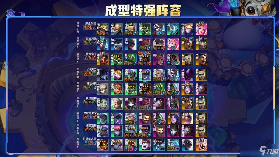 阵容分析组成3名流 2极客 2保镖布里茨、加里奥、纳尔、泽丽、金克丝、希尔科、萨勒芬妮、卡莎因为是卓尔不群的玩法,所以不需要过渡羁绊,互不相干比较好了,然后就是转职方面就是名流纹章或者名流之心最佳,可以9人口开5名流,去掉爆爆/泽丽即可,5名流能开出来就剩下卡莎来秀了。