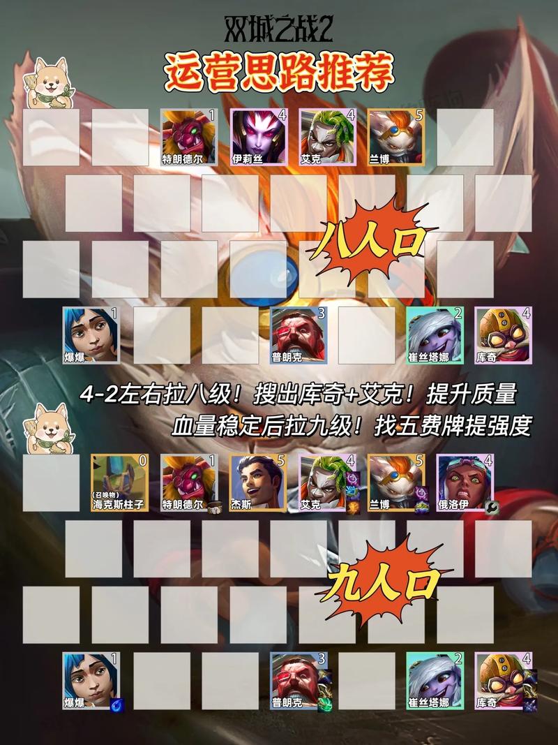 〖Three〗、过渡不要死板,只需强势连胜即可。学到现在大家是否发现,能玩的五费卡牌特别多。几乎到了9人口,什么两星都是对的。再加上名流卡莎、名流金克斯,九五的组合多不胜数。比较强势的就是极客九卓尔不群,逻辑是金克斯维克托C、烈娜塔五费C,杰斯卡莎C,卡莎维克托C,泽丽卡莎C等等。
