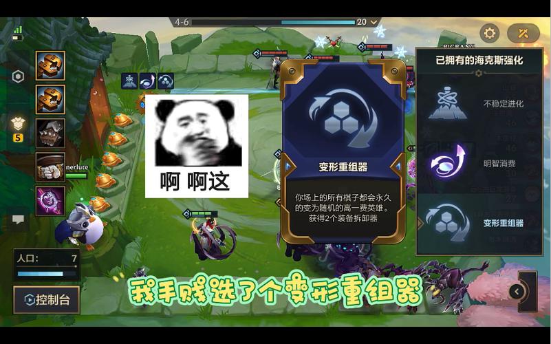 金铲铲之战变形重组器攻略这是一阶的海克斯羁绊,会随机刷新,在4-6的时候刷新几率最大,4-6之后刷新的概率就会变得很小。作用是将场上所有棋子永久变为随机高一费英雄,并且获得2个装备拆卸器。