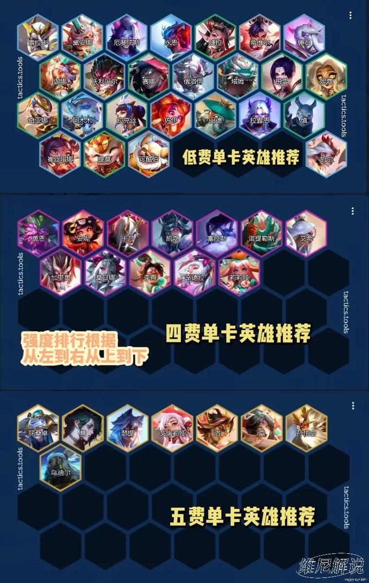 〖Two〗、在游戏初期,可以尝试使用一些低费卡和特殊效果卡来过渡,如寒冰射手艾希、德莱文等,这些英雄能提供不错的攻速和伤害,且不会激活卓尔不群羁绊。随着游戏进程,逐渐替换为金克斯、卡莎等高质量五费卡。
