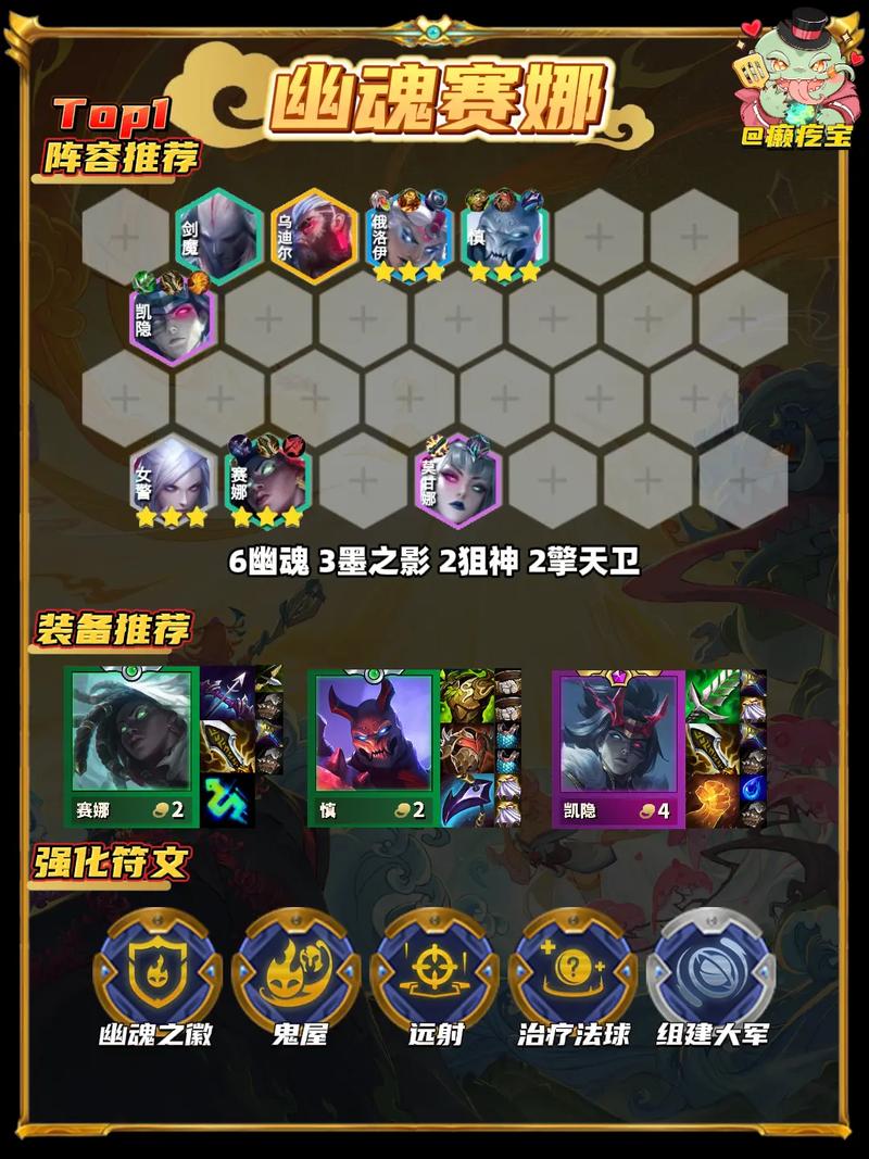 〖Three〗、阵容配置方面,建议玩家选取以下角色:皇子、乌鸦、猪妹、卢锡安、希维尔、牛牛、金克斯、希尔科。装备选取上,首先应优先为希维尔准备三件神装:水银、电刀、羊刀。其次,考虑为前排角色配置装备,并优先选取辅助装备,如旗子。