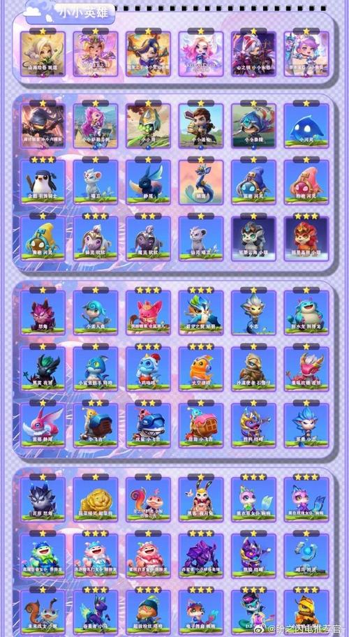 至臻级别的小小英雄在稀有度上排名比较高,它们是游戏中的顶级存在。 神话级别的小小英雄紧随其后,它们的稀有度也非常高,拥有独特的技能和强大的能力。 英雄级别的小小英雄是游戏中常见的一类,它们在战斗中扮演着重要的角色。