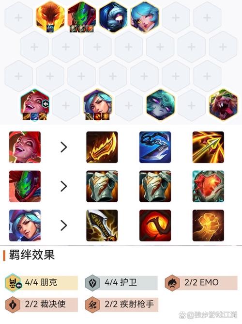 海克斯推荐“如此矮小”、“黄金门票”等。执法官狙神阵容:拥有强大的控制和输出能力。核心英雄为烬和泽丽,装备推荐无尽之刃、轻语等。海克斯推荐“执法官之心”、“狙神之巢”等。四海克斯阵容:以海洋、魔法师和刺客等英雄组成,具有强大的输出能力和羁绊效果。要合理搭配和站位,发挥最大威力。
