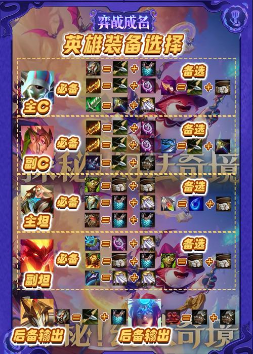 〖Five〗、狙击类英雄出装 狙击类英雄主要负责对敌方高价值目标进行精准打击,装备的选取应专注于提升攻击力和命中率。剑魔:致命之力和寒冰射手这样的组合可大幅提升他的单体伤害和控制能力。莉莉娅:配备精准无疆和鹰眼可以使她在远距离保持极高的伤害输出。