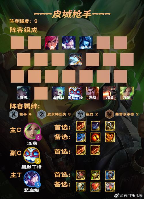 金:加快节奏、英勇福袋、治疗法球、投资回报、潘朵拉的装备等 彩:棱彩门票、新人入队、大师级星探、对冲基金、升级咯等 装备选取 主C 露露 纳什之牙:反曲弓+腰带 青龙刀:大剑+眼泪 备选装备:超级粉丝会给一个青龙刀,装备固定,40魔力的露露两下一次技能释放。