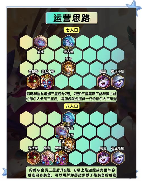 对于极客95阵容的构建,遵循老规矩至关重要。初期,优先获取小巨人和代谢增速器,以此为核心进行快速冲级与装备合成。在4阶段,选取摆烂策略,避免遭遇对手的强势期。待至5-2阶段,迅速升至9级,优先寻找金克斯和6极客单位,确保队伍的稳定输出与防御。在新版本中,极客95阵容进一步强化。
