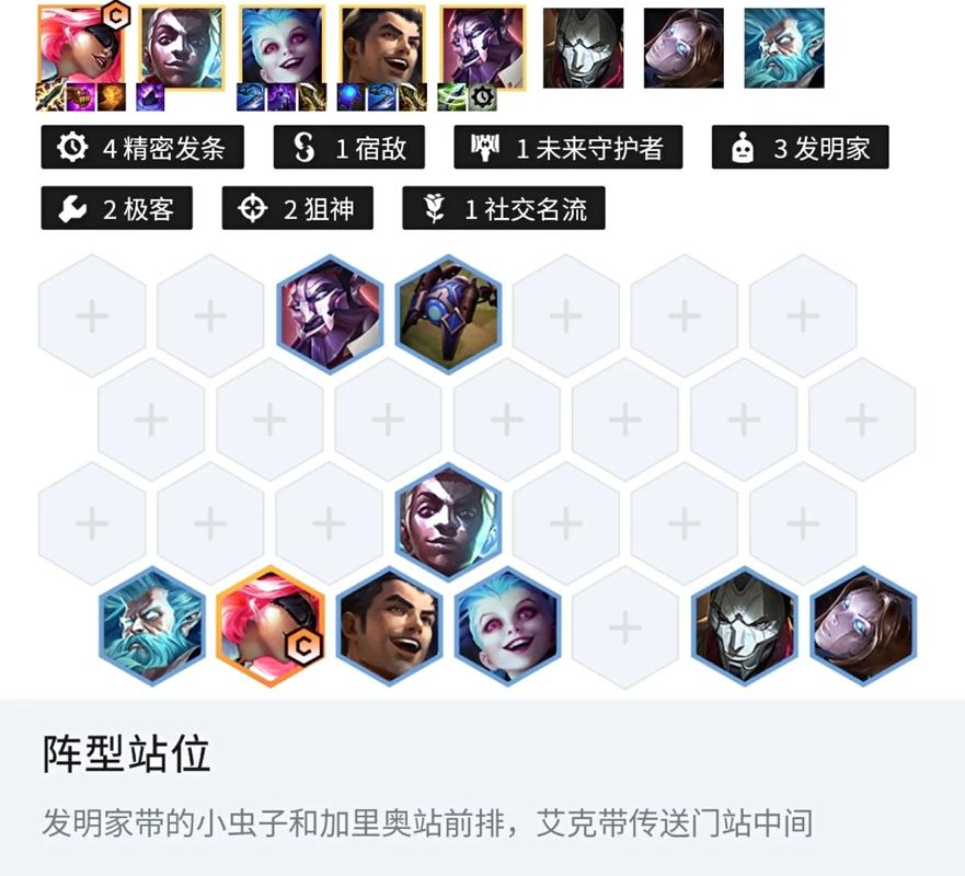 〖Three〗、阵容搭配方面,黑白魔法师的组合包括吉格斯、璐璐、斯维因、马尔扎哈、薇古丝、塔里克、迦娜和奥利安娜。其中,4个黑魔法使和4个白魔法使的羁绊效果是关键,再加上3个约德尔人的特殊属性,以及2个极客的协同效果,形成了一套完整的阵容。