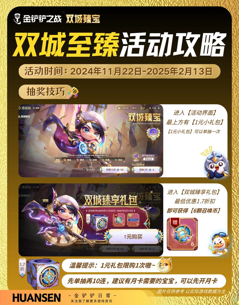 〖One〗、抽取海克斯英雄:在《金铲铲之战》中,玩家可以通过抽取方式获得海克斯英雄。海克斯英雄会在游戏内的抽卡系统中进行限时开放。玩家可以使用游戏内的虚拟货币或者钻石进行抽取,有机会获得稀有的海克斯英雄。参与活动与任务:游戏会不定期推出各种活动和任务,这些活动和任务往往会提供海克斯英雄作为奖励。