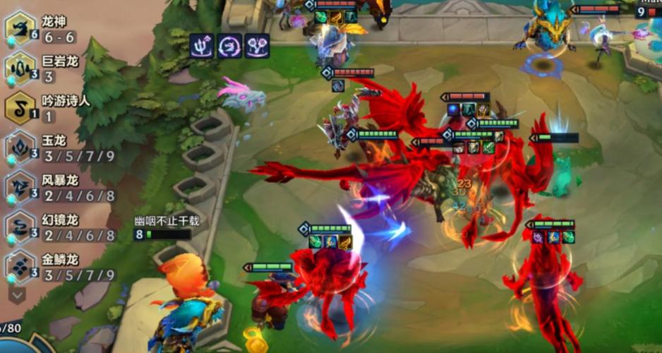 比较好能找到2星盖伦+2星龙王+2星剑魔和一张蕾欧娜,优先开出5战斗机甲。盖伦的物理伤害配合龙王的法术伤害可以做到启动清屏的效果。莫甘娜提供双抗减免,所以这套阵容可以不做轻语、电刀等破抗装备。后续推荐不要升9,而是在8人口一直D三星的盖伦和龙王,如果剑魔来得比较多也可以追三星的剑魔。