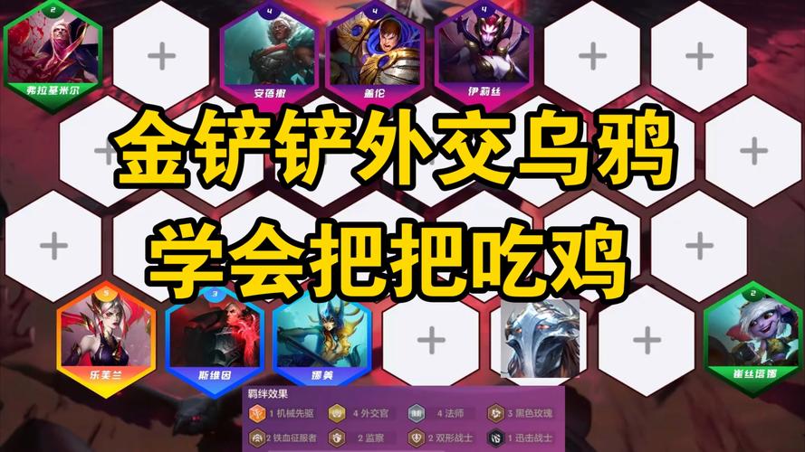 - 羁绊搭配:4海克斯、4格斗家、4强袭战士、2执法官。 海克斯选取:- 优先选取粉碎器,增加额外魔法伤害。- 其他转职如强袭战士之魂、海克斯科技纹章等也可以优先选取。 站位安排:- 希维尔比较好放在角落输出,确保安全。- 猪妹和蔚放在左上角和右上角,作为前排坦克。