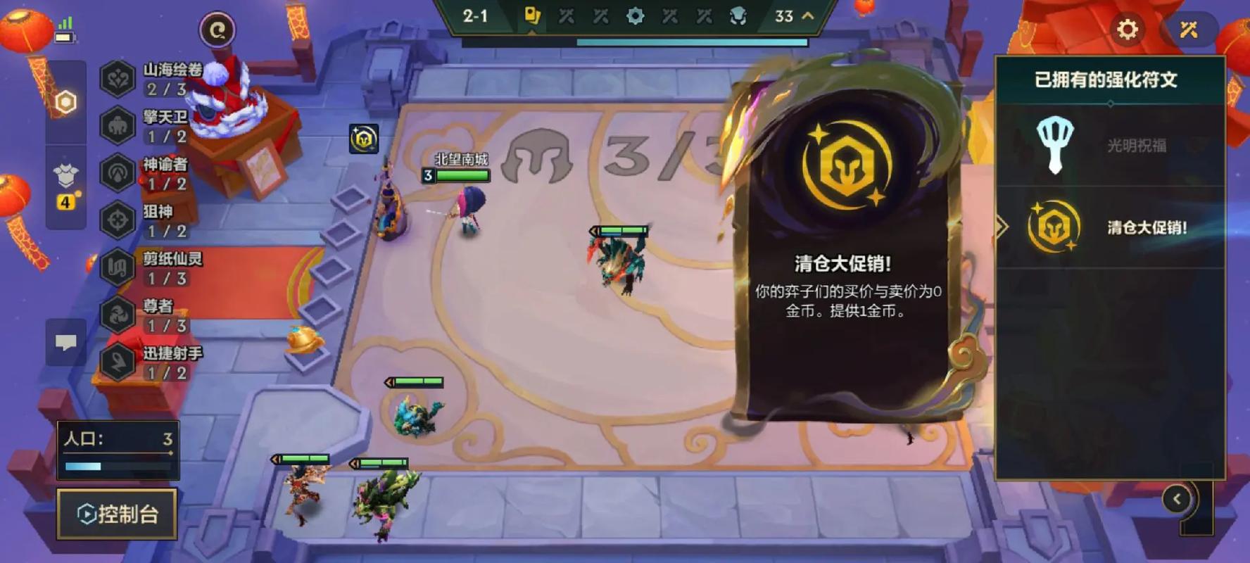 金铲铲之战清仓大甩卖怎么玩阵容介绍标准阵容:3山海绘卷2幽魂2神谕者1画圣这套阵容,彗十分关键,8级只要有1张彗,这把基本上保底出2个三星四费,如果没有彗的话,可以上2个泰坦/奥恩/安妮,艾希如果没装备,可以换成辛德拉,没装备的寒冰就是个挂件。