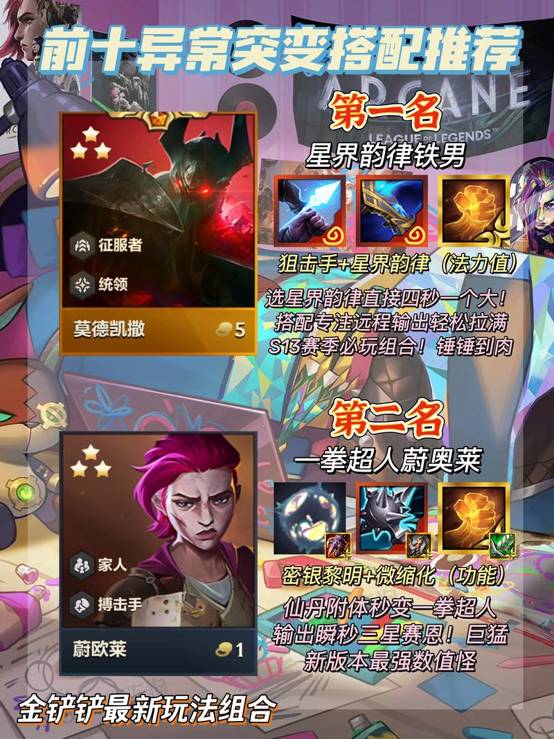 金铲铲之战S13爆发先知阵容的搭配方法如下:阵容组成- 核心英雄:大头(赫卡里姆)、蜘蛛(莉莉娅)、芮尔、乌鸦(卡尔萨斯)、努努、蚂蚱(塔莉垭)、妖姬(瑞兹)、烈娜塔、莫甘娜。羁绊组成- 6先知:核心羁绊,提供额外的法术强度和爆发输出能力。- 3黑色玫瑰:提供强力的攻击加成和额外的破坏力。