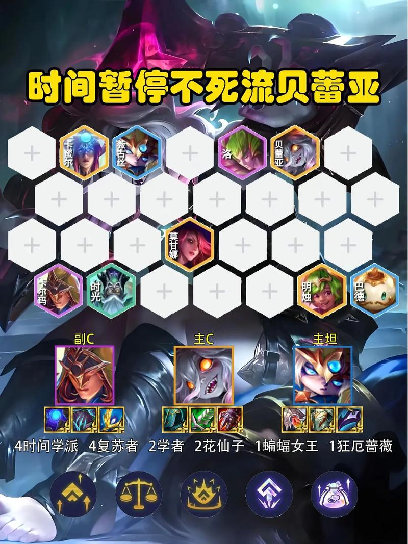 阵容搭配:蜘蛛,西斗之飒,迅箭,未来守护者,天罚神弩,皮城执法官,齐天大圣。阵容站位:若蜘蛛拥有传送门,无需站在前排,仅需站于第二排即可。蛛后的攻击距离为4,传送门的嘲讽距离同样为4,此站位可防止刺客切入后排。一旦刺客跳入阵容,将直接被传送门控制。