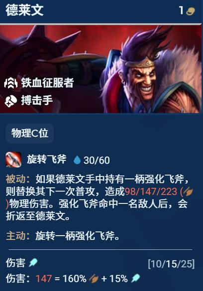 〖One〗、在《金铲铲之战》的S13赛季中,合成四星德莱文主要依赖于特定的海克斯强化和游戏策略。首先,玩家需要依赖一种特殊的海克斯强化,它会随机给玩家一个2星的一费弈子。在随后的2个回合之后,每个回合都会给玩家一个该弈子的一星版本,这个过程会一直持续到游戏结束。