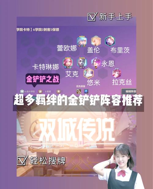 〖Three〗、金铲铲之战双城传说中的最强阵容之一是帝国挑战沙弥拉配置,该阵容包括六帝国和三挑战元素。具体英雄阵容为沙弥拉、狼人、乌鸦、男刀、剑姬、永恩、青钢影、奎因。另一个强力阵容是学院永恩,该阵容由六学院、两学者和两挑战构成。英雄阵容包括永恩、拉克丝、雷欧娜、男枪、卡特琳娜、卡莎、风女和猫咪。