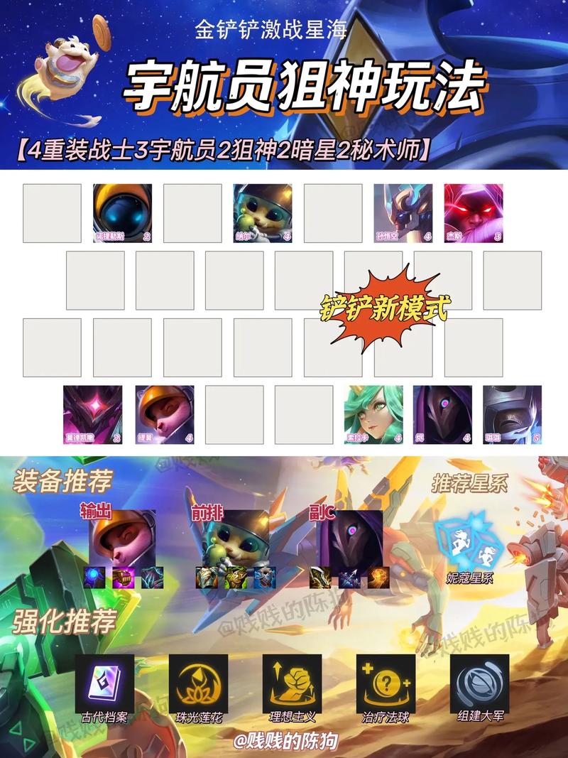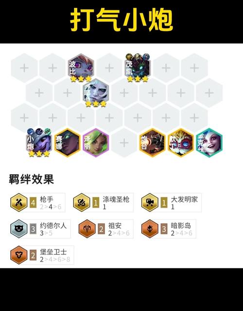 〖Three〗、下面带来金铲铲之战s6保镖狙神阵容介绍,希望对朋友们们有所帮助。s6保镖狙神阵容详解海克斯强化推荐:狙神纹章,狙神之心,狙神之巢,破损的秒表(没用,真的很垃圾),精密之魂。
