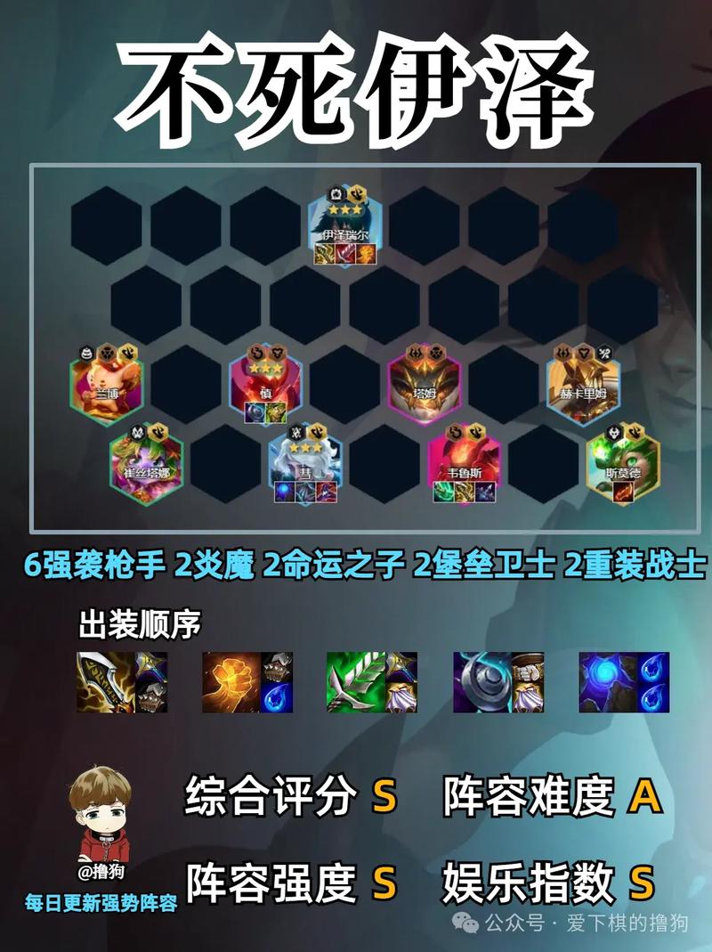 〖Four〗、泽丽作为唯一的输出,只要我们能在早起拿到一张就可以锁血成功,8级以后D牌顺利的话,2星战力就非常强势了。因为该阵容对装备的依赖是很大的,所以英雄之力优先选取卡牌,后期泽丽的主要输出就是依靠攻速,卡牌提供的装备选取可以用来做成棋子,用来提供后排的整体质量。