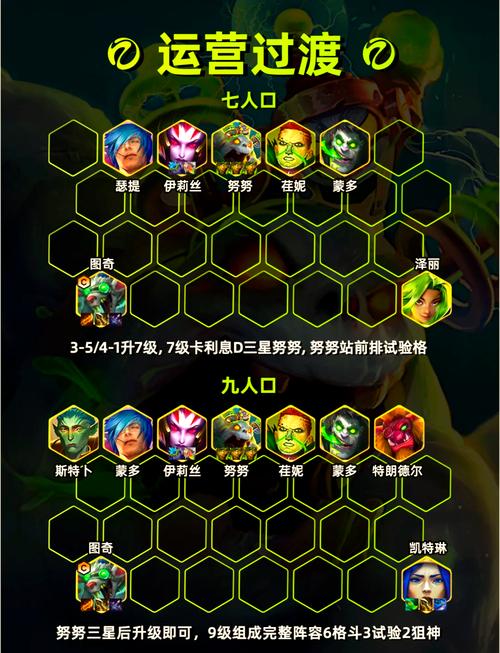 执事、狙神、精密为主要需求。9人口时开放5执事/4狙神/4精密,或8人口不开塞纳,通过学者、名流纹章增加阵容强度,但效果有限。装备分配 主C泽丽 混合伤害类型,首选正义,其次羊刀补足输出,巨杀作为后期神器,应对前排快速输出。若无,泰坦或法爆也足够。 主坦女坦 龙牙、反甲、狂徒为最佳选取。
