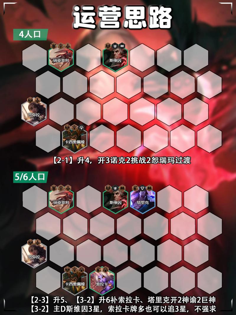 在具体搭配上,璐璐、斯维因、马尔扎哈、薇古丝、塔里克、迦娜、拉克丝和维克托(如有黑魔法师转职)是阵容的组成单位。其中,6个黑魔法使和4个白魔法使的羁绊,为阵容提供了强大的魔法伤害和控制能力。