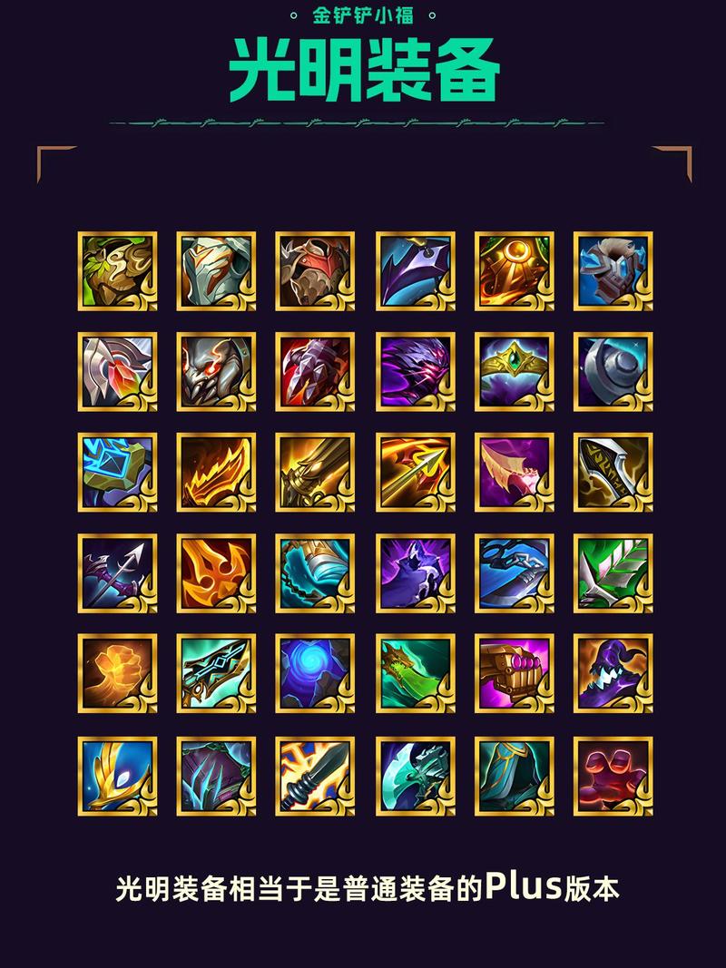 〖One〗、金铲铲之战光明圣物装备大全:天顶锋刃提供75%暴击几率(包含基础装备)和50%暴击伤害。100%海克斯科技生命之刃提供35%全能吸血:造成的伤害会对生命值最低的友军造成等额治疗效果。